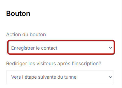 Cette action a pour but d'enregistrer un contact qui s'inscrit dans le formulaire et de le rediriger vers la page suivante du tunnel de vente.