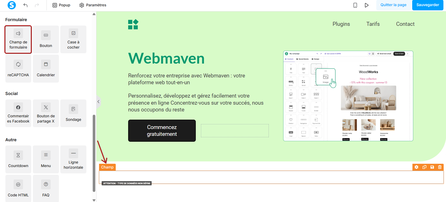Glissez l'élément "Champ de formulaire" dans votre page :