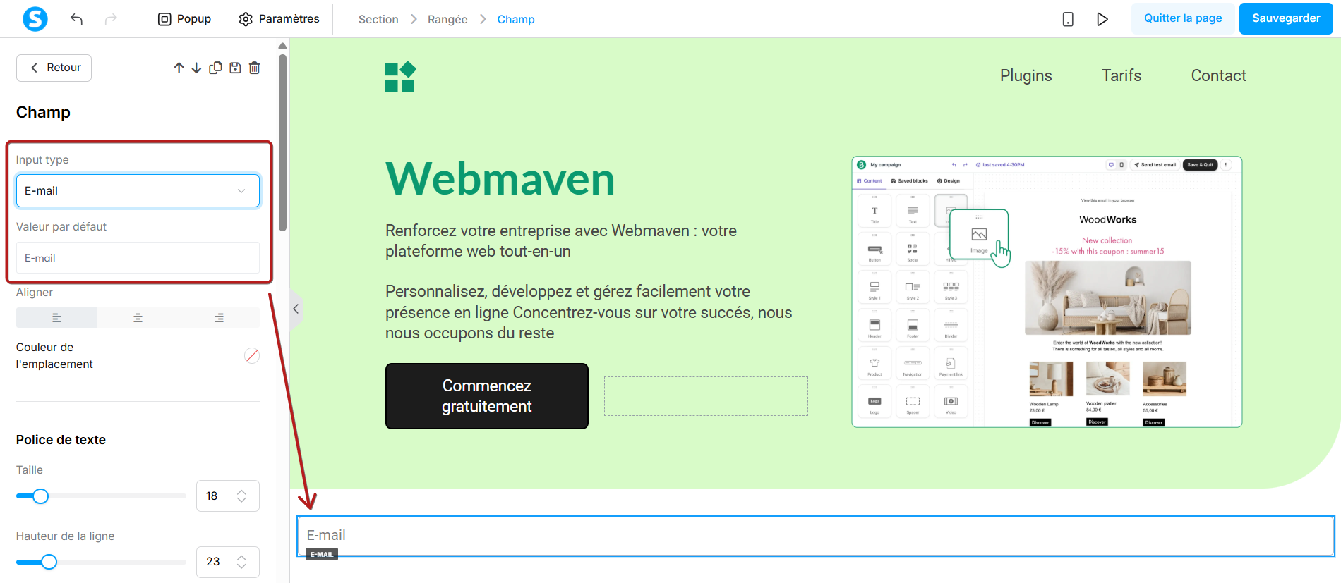 Exemple : Le champ "Email", qui permet au visiteur de saisir son adresse email afin qu'elle soit enregistrée dans votre liste de contacts.